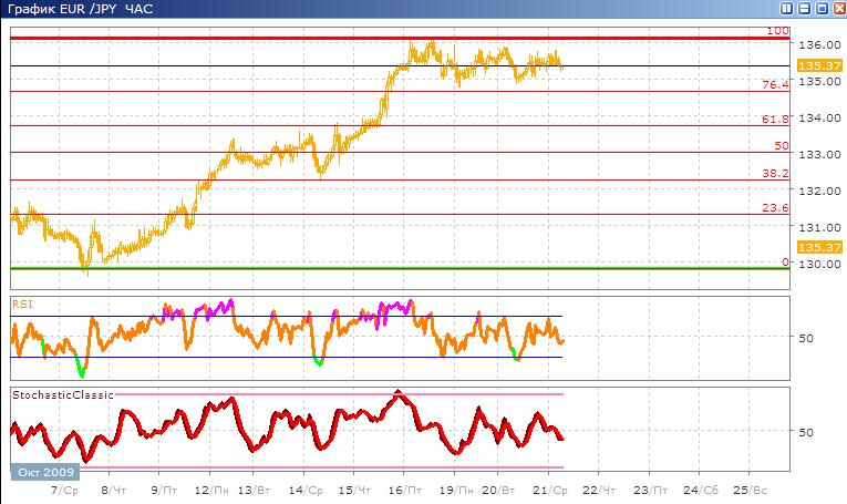 Как и ожидалось данная валютная пара находится в боковом движении, после стремительного роста.Сейчас валютная пара в канале между 76,4 и 100% по Фибоначчи. Дальнейшее движение возможно будет вверх, хотя пока это сложно понять. Используя классические индикаторы, такие как Stohastic он нам показывает пересечение на верх, подобное направление нам показывает и RSI разворачиваясь от середины своего показателя. Но данные показатели не так сильны из-за того, что они пересеклись не из зон перекупленности или перепроданности.