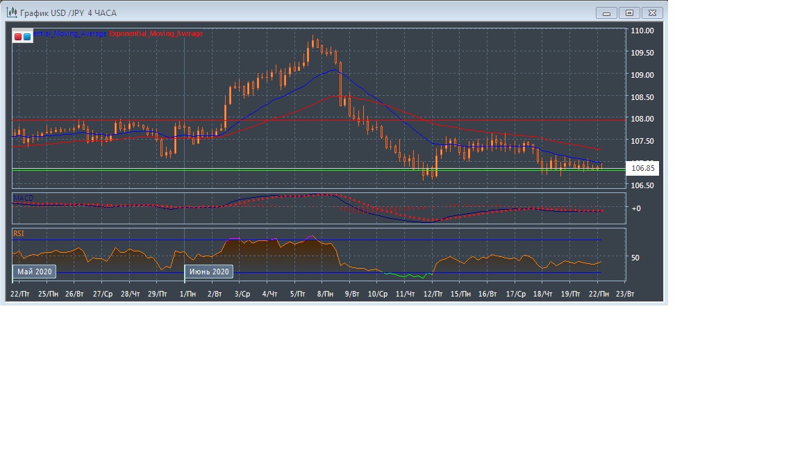 Техническая картина говорит в пользу продавцов поскольку гистограмма MACD прогрессирует в области чуть ниже своей центральной линии, а индикатор силы текущего движения RSI достиг линии 40, что говорит о медвежьей наклонности рынка.