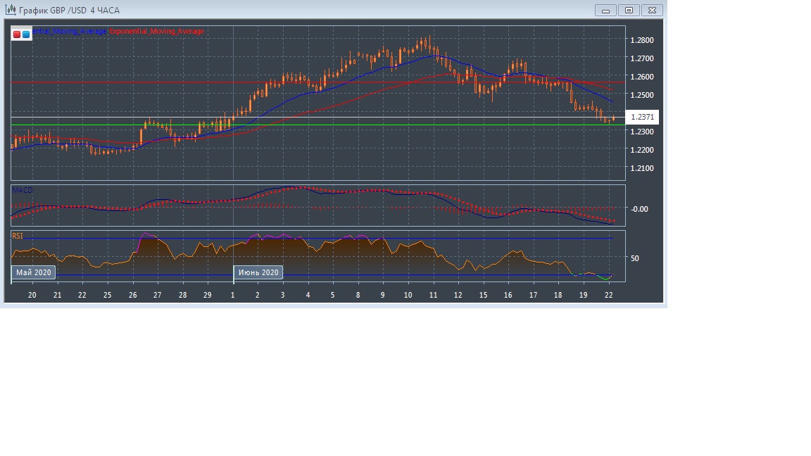 На четырёхчасовом графике скользящие средние замедлились и развернулись вниз, увеличивая расхождение, что так же говорит о медвежьей тенденции этого рынкка в краткосрочной перспективе.