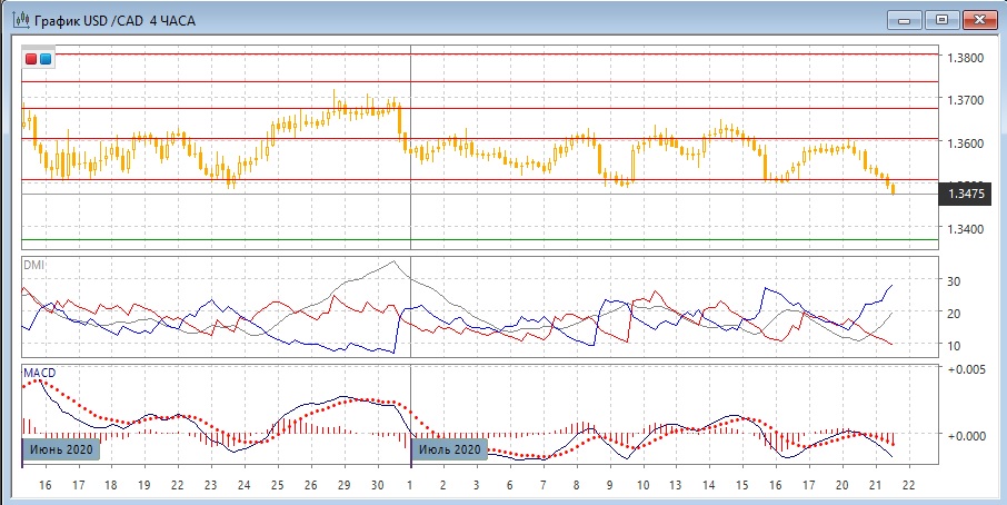 На дневном графике пара снижается ниже уровня нижней границы диапазона 1,3500-1,3675. При закрытии ниже более вероятным видится возвращение к поддержке на 1,3370. Также закрытие ниже 1,3500 стало бы преодолением линии шеи модели голова-плечи, формировавшейся с начала июня. Исходя из размера модели в 240 пунктов, целью при подтверждении модели может быть движение к 1,3260. Это немного ниже минимума июня.
