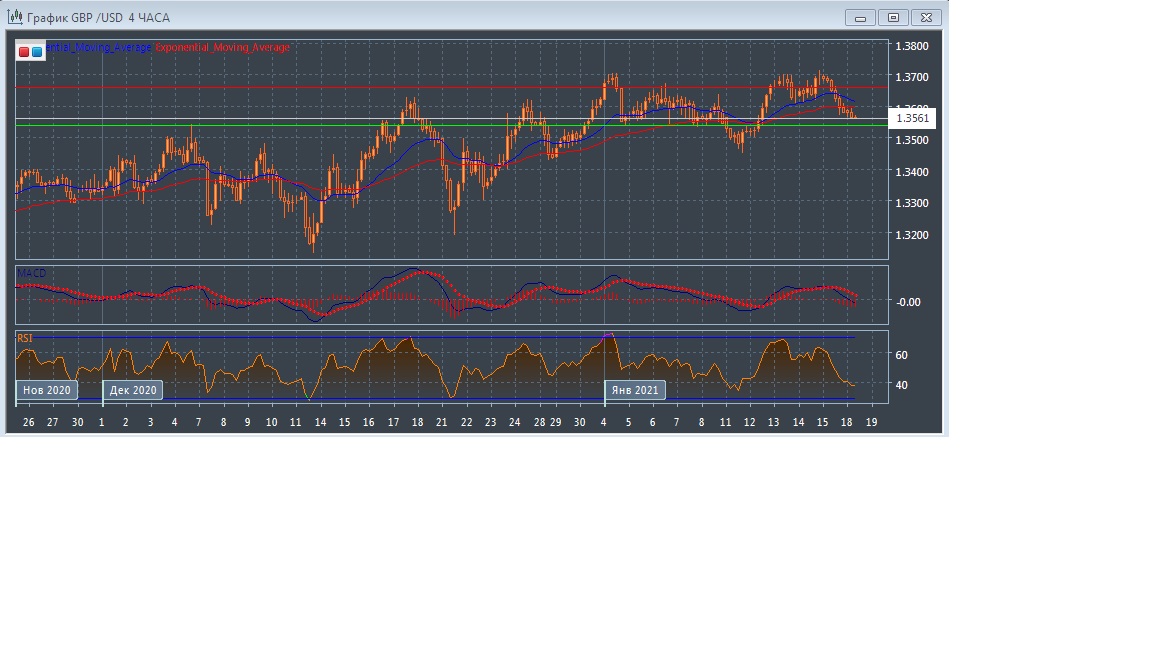 С открытием торгов в Азии в понедельник данная валютная пара торгуется с понижением котировок, оставаясь в пределах уровня поддержки на 1.3538 и уровня сопротивления на 1.3660, где график рынка прогрессирует в области ниже экспоненциальных скользящих средних с периодом 21 и 55 дней, демонстрируя медвежий потенциал рынка в краткосрочной перспективе.