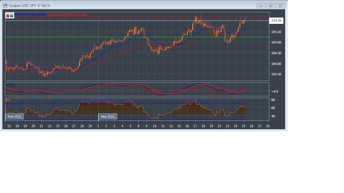 В течение азиатской торговой сессии в четверг валютная пара USD/JPY торгуется с повышением котировок, оставаясь в пределах текущего уровня поддержки на 105.21 и уровня сопротивления в районе отметки 106.19.