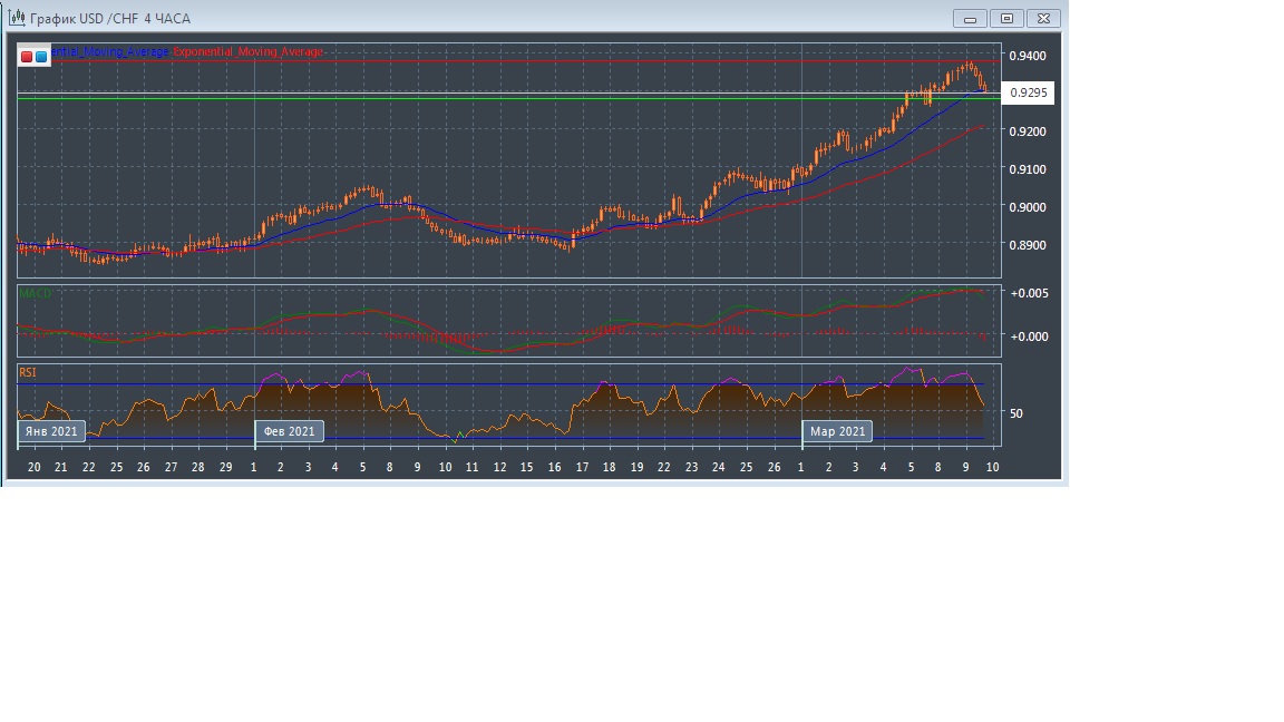 На четырёхчасовом графике скользящие средние с периодом 21 и 55 дней продолжают движение вверх, увеличивая расхождение, но чуть замедлились, что характеризует бычий сценарий развития этого рынка рамках внутридневной торговли. График котировок прогрессирует в области выше экспоненциальных скользящих средних, подтверждая восходящий потенциал данного рынка в краткосрочной перспективе.