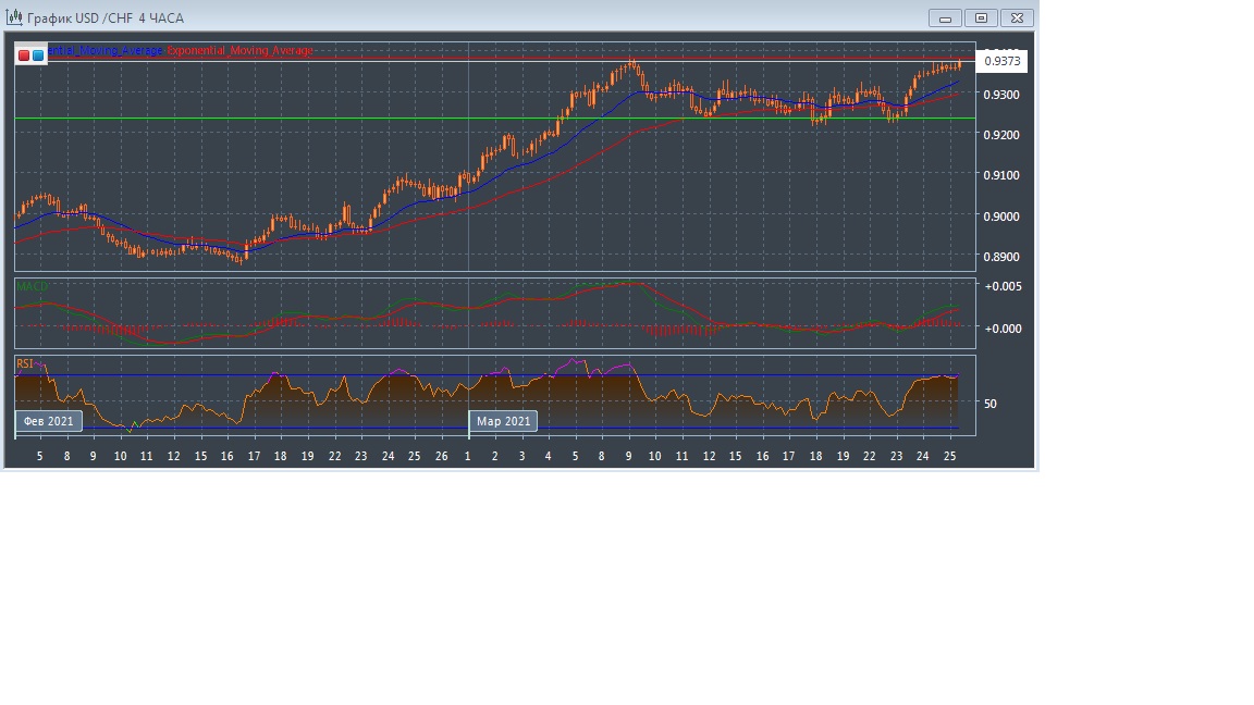 На четырёхчасовом графике скользящие средние с периодом 21 и 55 дней развернулись вверх и ускорились, увеличивая расхождение, что характерно для восходящего рынка в рамках внутридневной торговли. График котировок прогрессирует в области выше экспоненциальных скользящих средних, подтверждая бычий потенциал данного рынка в краткосрочной перспективе.