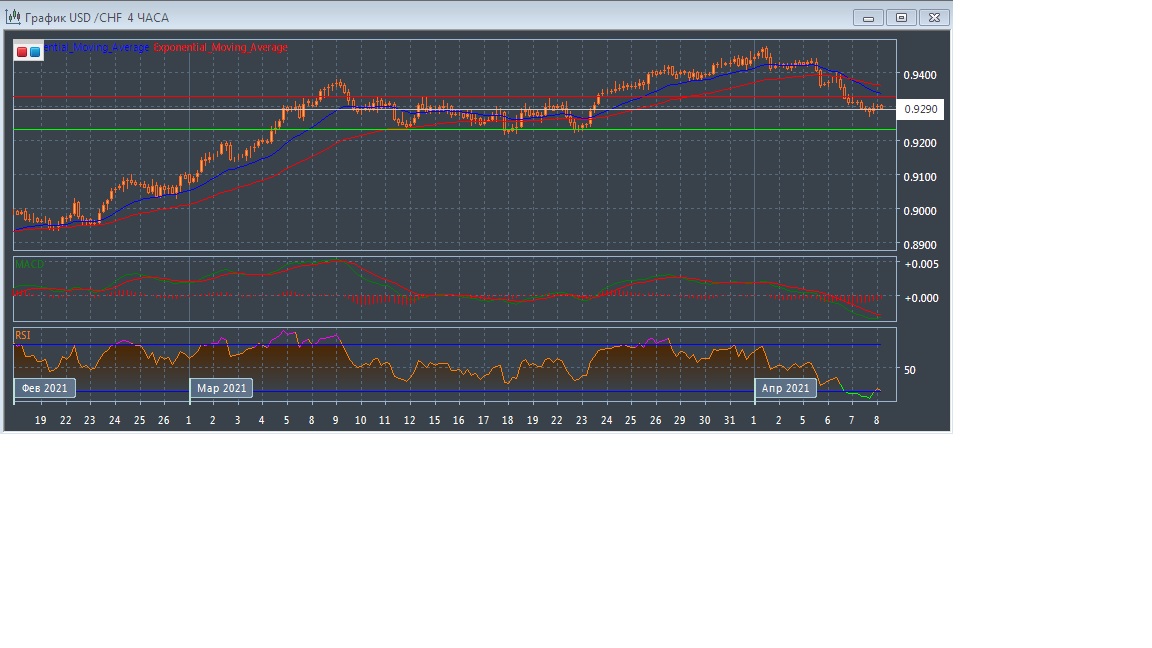 На четырёхчасовом графике скользящие средние с периодом 21 и 55 дней развернулись вниз, сформировали сигнал на продажу и теперь ускоряются увеличивая расхождение, что говорит о хорошем медвежьем потенциале. Таким образом, общий тренд в краткосрочной перспективе остаётся нисходящим. График котировок прогрессирует в области ниже экспоненциальных скользящих средних, подтверждая медвежий потенциал данного рынка в краткосрочной перспективе.