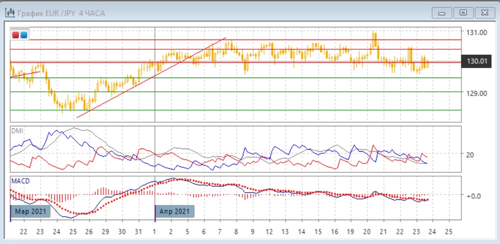 Уровни сопротивления: 130,00; 130,40