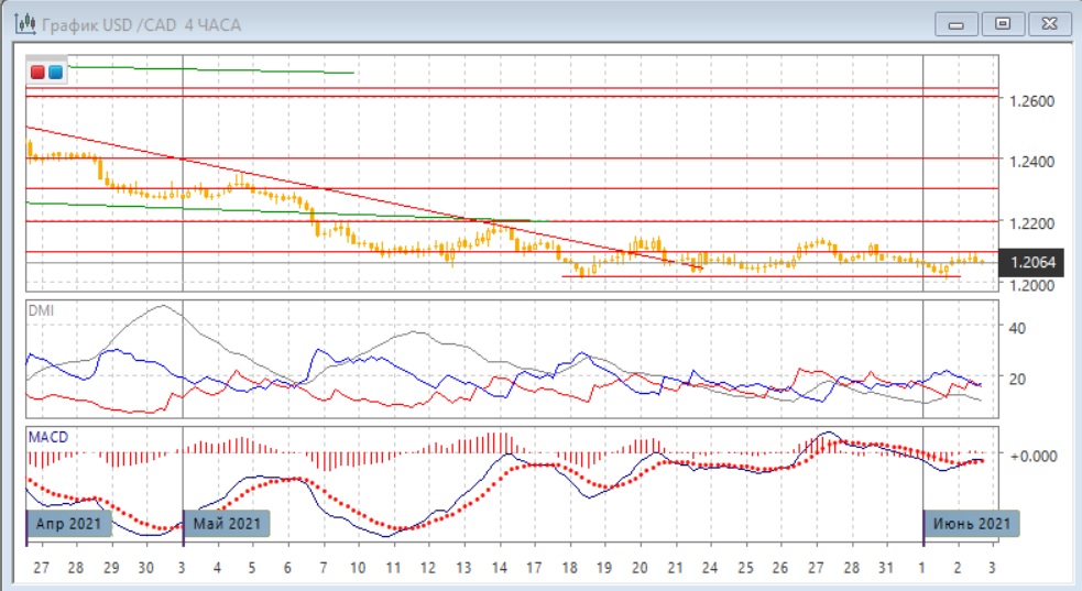 На четырёхчасовом графике пара получила поддержку при приближении к "круглому" уровню 1,2000, также она находится выше относительных минимумов в мае, которые находились немного выше 1,2000. В среду произошёл ещё один откат от сопротивления на 1,2100, но пока он не получил развития. Пара уже долго остаётся в узком диапазоне, и это может предвещать относительно сильное движение после того, как пара выйдет из него.