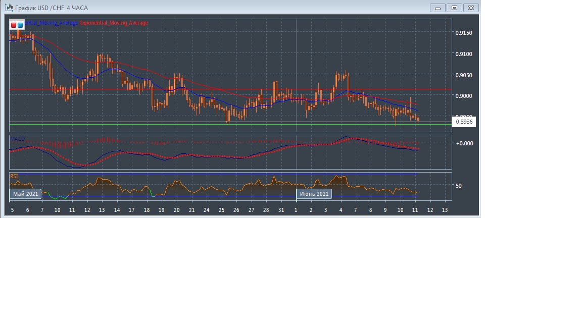 На четырёхчасовом графике скользящие средние с периодом 21 и 55 дней развернулись вниз и ускоряются, увеличивая расхождение, что говорит в пользу медвежьего тренда на этом рынке. График котировок прогрессирует в области ниже экспоненциальных скользящих средних, что так же является признаком медвежьего потенциала данного рынка в краткосрочной перспективе.