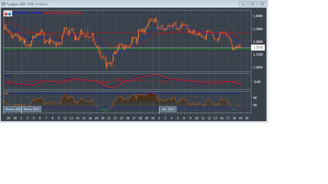 На четырёхчасовом графике скользящие средние продолжают движение вниз, увеличивая расхождение, что свидетельствует в пользу развития нисходящего движения данного рынка в краткосрочной перспективе.