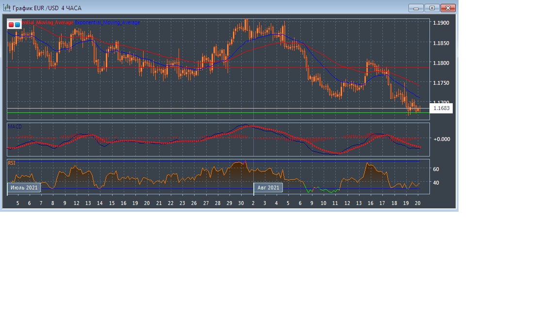На торгах в Азии в пятницу валютная пара EUR/USD продолжает торговаться с существенным понижением котировок, оставаясь в пределах текущего уровня поддержки на 1.1673 при уровне сопротивления на 1.1785. Четырёхчасовой график по-прежнему прогрессирует в области заметно ниже экспоненциальных скользящих средних, демонстрируя продолжение медвежьего уклона данного рынка в краткосрочной перспективе.