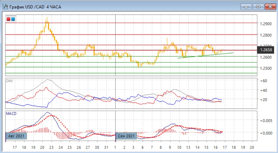На дневном графике пара осталась в более широком диапазоне июля-сентября, и в более узком диапазоне 1,2600-1,2700. Дальнейшее движение скорее будет в сторону выхода из этого более узкого диапазона. Так как сопротивление на 1,2700 безуспешно тестировалось, преодоление поддержки на 1,2600 кажется более вероятным, но, так как это тоже сильный уровень, что было видно в том числе по образованию нижних теней свечей выше этого уровня в начале сентября, стоит дождаться фактического выхода пары за границы 1,2600-1,2700.