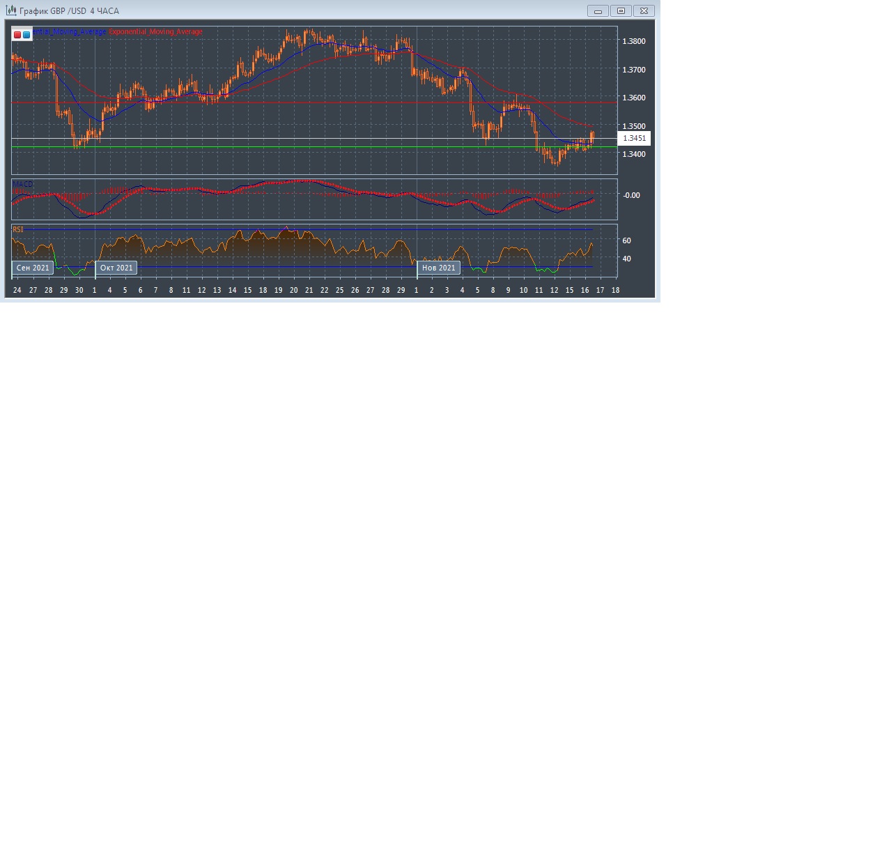 На четырёхчасовом графике скользящие средние продолжают движение вниз и увеличивают расхождение, но чуть замедлились, что всё равно свидетельствует об укреплении медведей на этом рынке в краткосрочной перспективе.