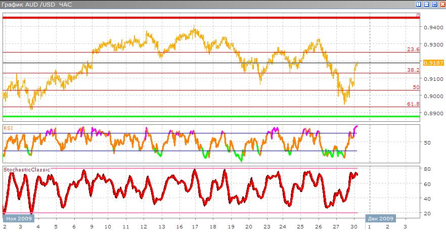 Австралиец откатился к предыдущему уровню в 61,8%, потом показал что этот уровень по-прежнему не его и напрвился к 23,6%, т.к. доллар США не так силен в последнее время. Скорее всего в ближайшее время рост ьудет продолжен после небольшого отката.