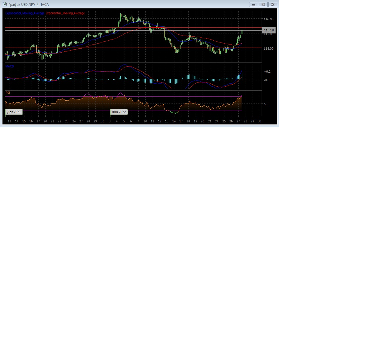 Скользящие средние с периодом 21 и 55 дней развернулись вверх и готовы сформировать сигнал на покупку, максимально сократив расхождение. Четырёхчасовой график прогрессирует выше экспоненциальных скользящих средних, демонстрируя развитие восходящего тренда на этом рынке в краткосрочной перспективе.