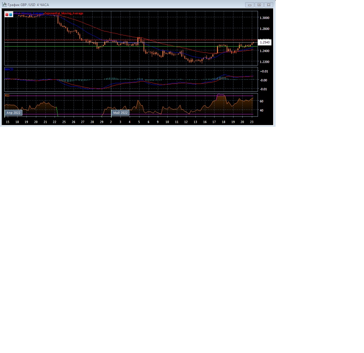 На четырёхчасовом графике скользящие средние разворачиваются вверх, постепенно увеличивая расхождение, что свидетельствует о восходящем потенциале данного рынка в краткосрочной перспективе.