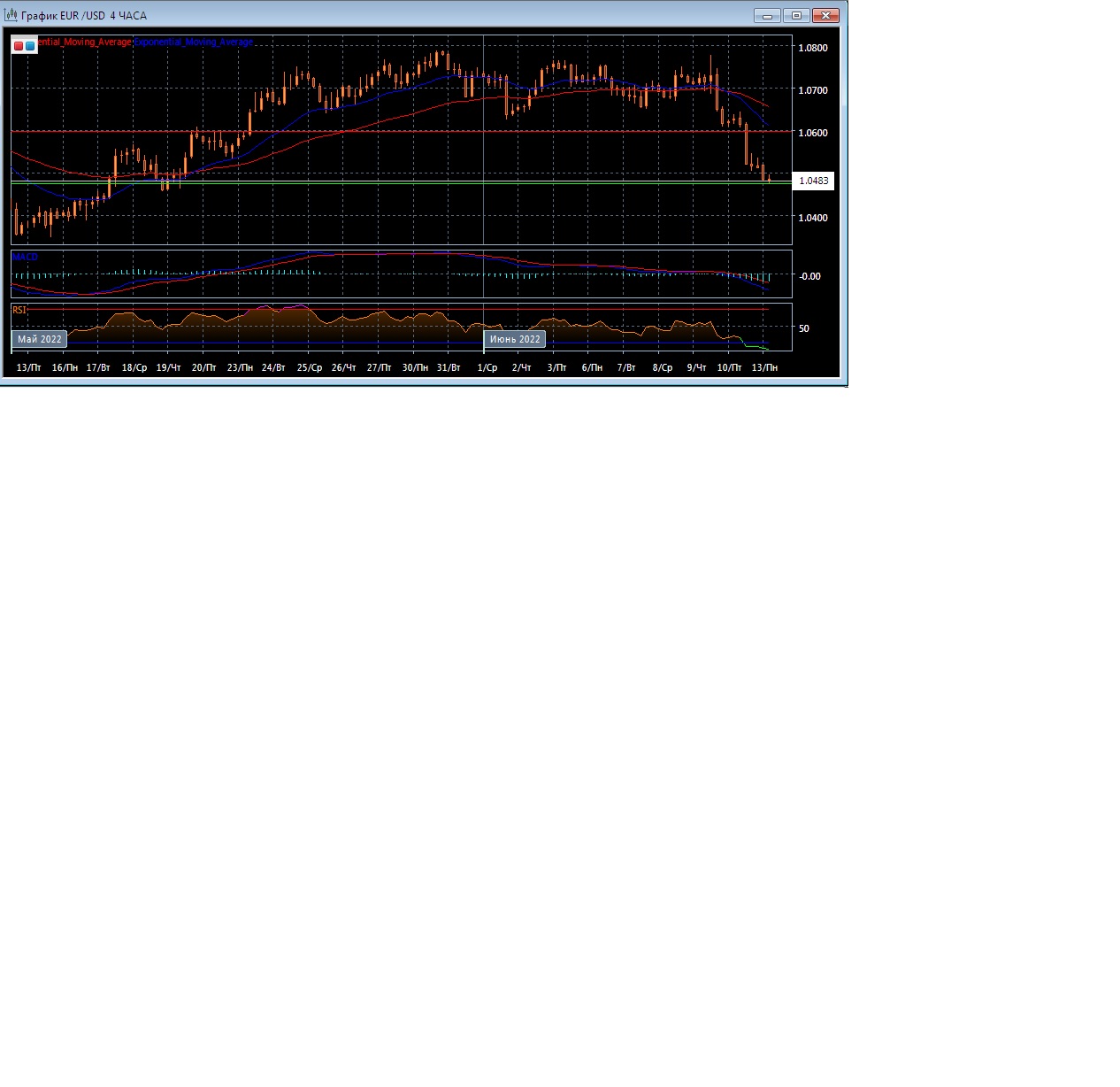 На торгах в Азии в понедельник валютная пара EUR/USD торгуется с понижением котировок, оставаясь в пределах текущего уровня поддержки на 1.0475 при уровне сопротивления на отметке 1.0598. Четырёхчасовой график развивается значительно ниже экспоненциальных скользящих средних, демонстрируя хороший медвежий потенциал текущей рыночной тенденции в краткосрочной перспективе.