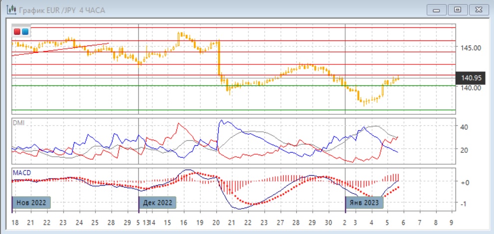 На четырёхчасовом графике рост, кажется, замедляется: это видно по уменьшению наклона графика и образованию верхних теней у последних свечей, для волны роста, а не коррекционной, это не характерно. Однако пара остаётся выше поддержки на 140,00, которая может ограничить откат. Пока движение от 137,00 кажется коррекционным, и, вероятно, лучше рассчитывать на снижение при возвращении ниже 140,00.