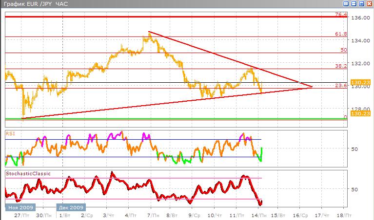 Евро-йена сейчас находится в боковом канале на очень надежной линией поддержки, от которой она вероятно отскочит в покупку и уйдет до верхней границе канала, которую вполне вероятно, что пробьет вверх и пойдет до уровня 38,2% по Фибоначчи. Возможен альтернативный вариант когда после небольшого оскока от нижней границы кросс курс пробьет линию поддержки вниз.