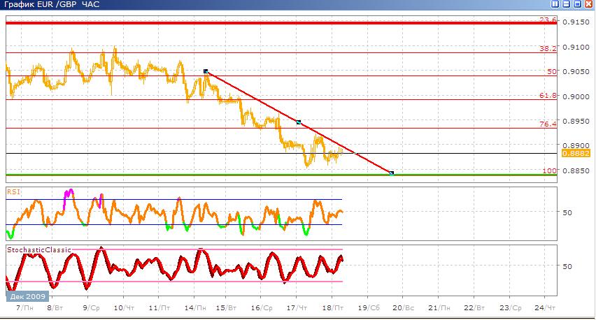 Торговые индикаторы показывают, начинающиеся продажу Stohastic пересекается двумя скользящими средними вниз, RSI пока находится еще в районе 50%, но он уже поворачивает в продажу.