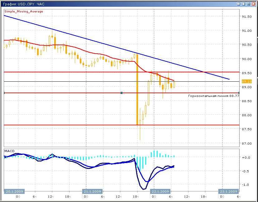Динамику пары определили вышедшие данные по результатам внешней торговли Японии, которые показали новый антирекорд. После периода острой волатильности пара продолжила среднесрочную тенденцию укрепления японской валюты. В краткосрочной перспективе вероятен отскок пары вверх, как реакция рынка на резкое снижение, последовавшее за выходом новостей. Индикатор MACD (5, 34, 5) сигнализирует о продолжении нисходящей тенденции, данные сигналы подтверждены направлением среднесрочного тренда, определяемое анализом МА 21, которая сгладила рыночный бросок во время американской сессии. Уровень сопротивления расположен у отметки 89.50, ближайший уровень поддержки находится у отметки 88.70.