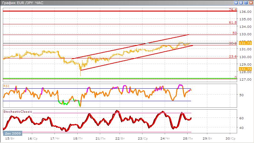 Евро-йена по-прежнему торгуется в восходящем канале, торговля ведет возле отметки 38,2% по Фибоначчи как раз находится у нижней границы канала, что означает скорое движение от нижней границы вверх по каналу и восходящее движение сохранится. В альтернативном варианте пробой нижней границы и создание нисходящего движения.