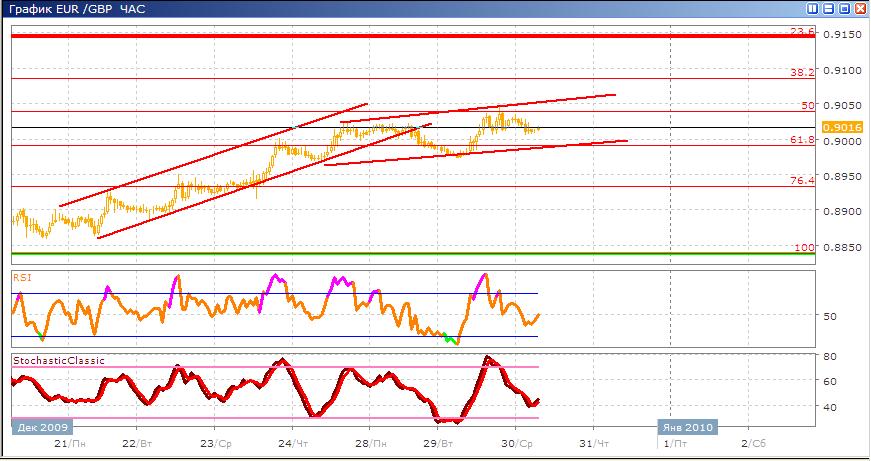 Данная пара пробивает свой восходящий канал вниз, но при этом строит боковой канал более широкий, и в целом направленный наверх. Сейчас пара находится в середине этого нового канала и дальнейшее движение скорее всего, будет направлено наверх. В альтернативном варианте, будет пробой уровня 61,8% и уход ниже него и создание нисходящего тренда. Торговые индикаторы показывают единодушно сигнал к покупке валюты Stohastic пересекается наверх, а RSI разворачивается также в сторону покупки, усиливая данный сигнал.