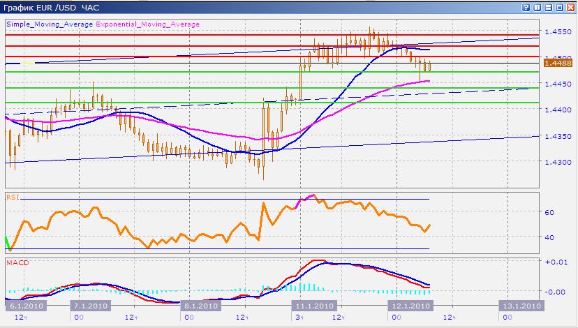 1.4500, затем 1.4520 (преодолевая сопротивление