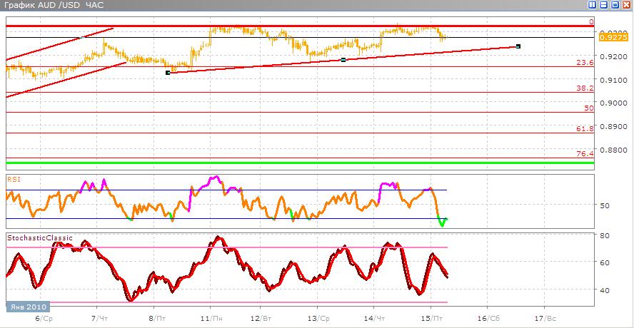 Австралийский доллар несколько раз пытался пробить сопротивление 0,9324, но пока это ему не удалось. Сейчас торговля проходит под потолком канала возле его максимумов, возможность что скоро состоится пробой, хотя новости поддерживали австралийский доллар, но этого оказалось недостаточно. Сейчас пара торгуется возле 0,9280 слегка откорректировавшись от максимума. В альтернативном варианте возможно, что пробой состоится вниз и пара отправится значительно ниже 0,9200. Стандартные индикаторы торговли показывают разнонаправленный сигнал Stohastic после пересечения своей сигнальной линии со скользящей продолжает движение вниз, а RSI выйдя из зоны перепроданности идет вверх.