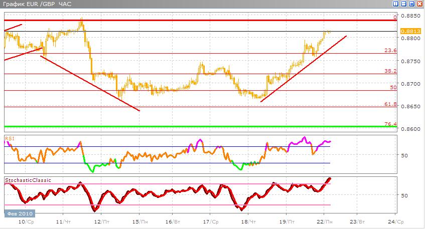 Валютная пара сейчас сейчас находится в восходящем движении и эта пара резко возросла от 61,8% до 23,6% по Фибоначчи и выше этого уровня. Скорее всего это восходящее движение иссякает, и далее будет отскок вниз. В альтернативном варианте, торговая пара будет расти далее в сторону линии сопротивления . Торговые индикаторы указывают нам, на смену сигнала с покупки на продажу, Stohastic пересекается скользящими средними сверху вниз в зоне перекупленности, а RSI выходит из этой зоны по направлению вниз.