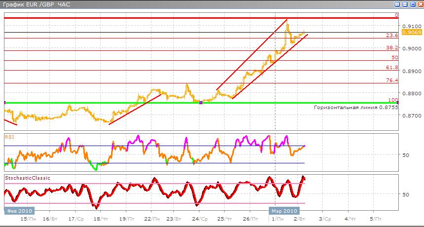 Валютная пара после небольшого «отдыха» совершает резкий рост и пробивает уровень сопротивления и сейчас находится в сильном восходящем движении. Таким образом, евро возвращается к максимуму конца прошлого года. Скорее всего, дальнейшее движение будет корректировочным по отношению к росту и пара окатиться к уровню 38,2% по Фибоначчи. В альтернативном варианте торговли возможно, что текущее восходящее движение будет продолжено и состоится пробой текущего уровня сопротивления. Торговые индикаторы указывают нам на сигнал продажи, Stohastic пересекается скользящими средними сверху вниз в зоне перекупленности и идет по направлению вниз, а RSI также выходит из этой зоны по направлению вниз.