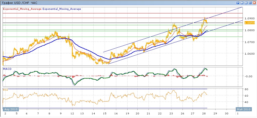 Нисходящее движение пятницы-понедельника остановосилось на уровне 1.0700, после чего пара начала уверенно расти (преодолев 200 пунктов) и достигла в понедельник уровней максимумов 19 февраля. С начала сегодяншних торгов пара протестировала уровень 1.0900 и стала снижаться. Картина все та же — бычья, пара снова торгуется в восходящем канале, средние скользящие ЕМА21 и ЕМА55 продолают рост, индикаторы MACD RSI показывают некоторое снижение, находясь над своими центральными линиями. После вчерашнего роста вероятнее всего будет коррекция вниз, целями которой станут 1.0840 и далее уровень 1.0800 (где пара получит поддержку от нижней границы восходящего канала). Целью вверх является уровень 1.0900 (с сопротивлением от верхней границы канала), далее 1.0940.