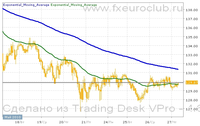 Валютная пара gbp/jpy находится в состоянии сильного падающего тренда. Сейчас котировки находятся ниже минимумов панического обвала 6 мая. Целью падения является уровень в районе 120.00. На данный момент большинство признаков подтверждают наличие понижательного тренда. Комбинация скользящих средних с периодами 55 и 200 сейчас находится в положении нисходящего движения, поскольку быстрая линия устойчиво находится ниже медленной. И обе средние сейчас одновременно понижаются, поэтому не исключено, что снижение может ускориться. В данных условиях повышение котировок валютной пары gbp/jpy пока маловероятно.