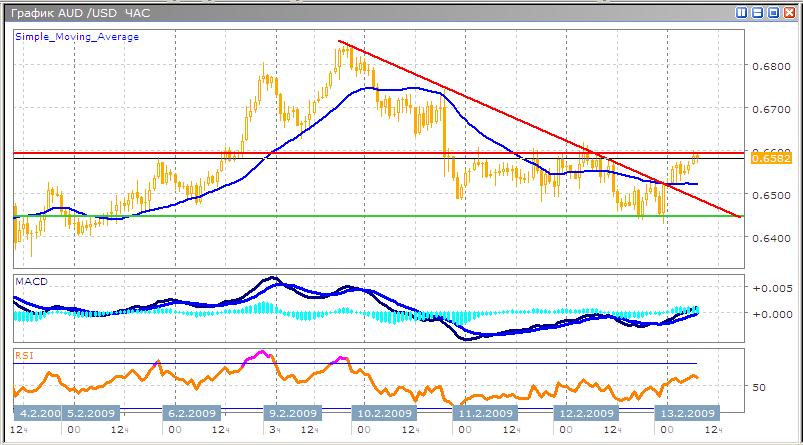 После выхода достаточно позитивных данных по поводу работы над правительственным планом поддержки, австралийский доллар несколько прибавил в весе против доллара США. Тем не менее, текущий рост находится под угрозой, пара встретилась с уровнем сопротивления, и в среднесрочном плане стоит ожидать умеренной коррекции, и далее торгов в боковом тренде. График индикатора RSI, пересек снизу вверх уровень 50 пкт, подавая надежду покупателям. Перспективы снижения ставок RBA также ограничивают рост, поскольку экономика Австралии только начала вступать в рецессию, то потенциал к снижению национальной валюты достаточно велик, даже несмотря на уже немалое снижение. Краткосрочный рост взял высокий старт, что не может продолжаться слишком долго, поэтому можно ожидать ухудшения настроения быков, при штурме уровней сопротивления.