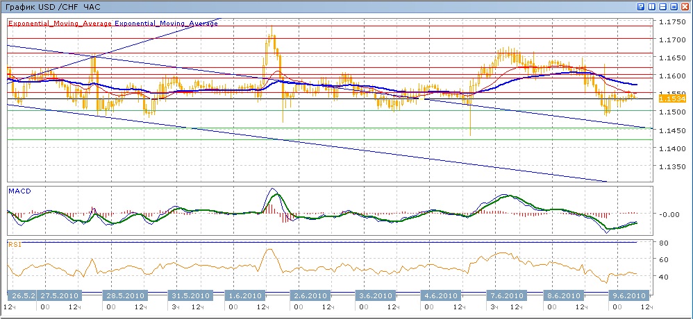 Пара продолжает двигаться в диапазоне 1.1500-1.1700, в который она вошла 24 мая. Практичски добравшись дл верхней границы бокового канала 1.1700, пара за понедельник и вторник снизилась до его нижней границы. Получив от нее поддержку, пара закрылась во вторник несколько ниже 1.1550. с начала сегодняшних торгов пара очень слабо растет. Средние скользящие ЕМА21 и ЕМА55 пересеклись вниз и снижаются, индикаторы MACD и RSI находятся под своими центральными линиями и растут. Цель начавшегося в понедельник нисходящего движения — 1.1500, далее 1.1450, и 1.1420. Цели ввех — 1.1550 (с сопротивлением от 1.1550), далее 1.1600 (с сопротивлением от ЕМА55) и 1.1620.