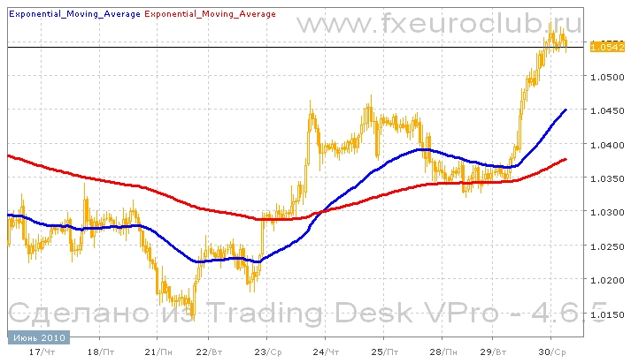 Валютная пара usd/cad после длительного снижения сумела отскочить от минимальных уровней в районе 1,0150 и затем двинулась вверх, достигнув уровня 1,0560. Поэтому сейчас сформировался устойчивый восходящий тренд. Дальнейшей динамикой скорее всего так же станет восходящее движение. К тому же поведение технических индикаторов сейчас говорит больше за предстоящее повышение. Комбинация скользящих средних с периодами 55 и 200 сейчас находится в положении восходящего тренда, поскольку быстрая линия пересекла снизу вверх медленную. И обе сейчас повышаются. В данных условиях повышение котировок в ближайшее время может ускориться. Целью движения вверх может стать уровень 1.0700.