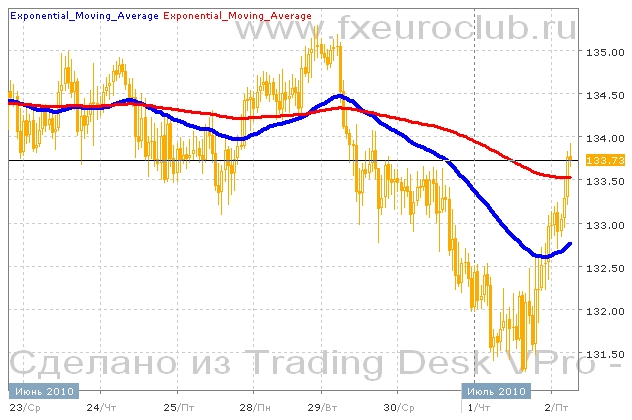 Валютная пара gbp/jpy не смогла продолжить снижение, начатое в середине недели и в данный момент находится относительно посредине от максимальных и минимальных значений последнего месяца. Если максимальный уровень в районе 136,50 будет пробит, то целью повышения станет район 142,50 В противном случае котировки начнут понижаться и в итоге получится фигура технического анализа "тройная вершина" с целью падения в район 127,50. Технические индикаторы пока говорят о возможном начале повышения. Комбинация скользящих средних, в которой быстрая с периодом 55 находится ниже медленной средней с периодом 200, говорит о продолжении нисходящего тренда. Но, быстрая средняя сейчас повернулась вверх, поэтому падение котировок в данных условиях маловероятно пока не пробит уровень 130,00.