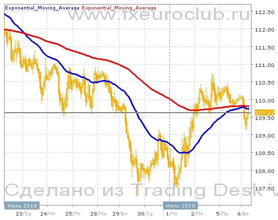 Валютная пара eur/jpy находится в состоянии падающего тренда, хотя котировки сумели закрепиться вблизи важного уровня поддержки в районе 109,00. Сейчас происходит небольшой отскок от минимальных уровней. По завершении отскока можно будет сказать, продолжится ли падающий тренд или начнется новый растущий. Хотя технические индикаторы, такие как комбинация скользящих средних с периодами 55 и 200 некоторое время находятся в положении падающего тренда, поскольку быстрая линия находится ниже медленной. Но обе сейчас движутся горизонтально. В данных условиях поведение котировок валютной пары eur/jpy может перерасти в ускорение падения после преодоления уровня 107,00. Целью понижения в таком случае является уровень 105,00.