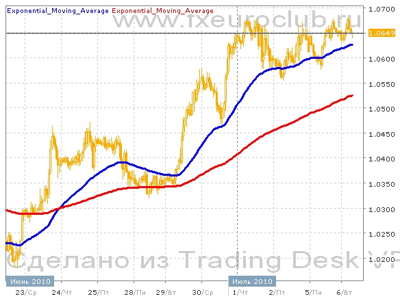 Валютная пара usd/cad продолжает уверенно двигаться вверх, достигнув уровня 1,0660. Поэтому сейчас сформировался устойчивый восходящий тренд. Дальнейшей динамикой скорее всего так же станет восходящее движение. К тому же поведение технических индикаторов сейчас говорит больше за предстоящее повышение. Комбинация скользящих средних с периодами 55 и 200 сейчас находится в положении восходящего тренда, поскольку быстрая линия пересекла снизу вверх медленную. И обе сейчас повышаются. В данных условиях повышение котировок в ближайшее время может ускориться. Целью движения вверх может стать уровень 1.0900. Но произойдет это если удастся пробить вверх сильный уровень сопротивления в районе 1,0660. Если он устоит то образуется фигура технического анализа "тройная вершина", после которой рынок может развернуться и пойти вниз.