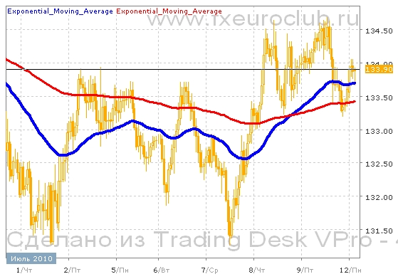 Валютная пара gbp/jpy продолжает колебаться на достигнутых ранее уровнях, хотя появляется все больше признаков продолжения падающего тренда. После достижения минимума в районе 131,30 состоялся отскок вверх до уровня 134,60. Но дальнейшего движения вверх не последовало. В данный момент цены консолидируются примерно в средней части диапазона вблизи отметки 133,80. При этом продолжение тренда будет выяснено после выхода котировок за пределы сложившегося диапазона колебаний 131,30-134,60. Комбинация скользящих средних с периодами 55 и 200 сейчас находится в положении восходящего тренда, поскольку быстрая линия пересекла недавно сверху вниз медленную. Но обе средние сейчас движутся горизонтально, поэтому не исключено, что повышение котировок может и не состояться. Понижение котировок валютной пары gbp/jpy выглядит более вероятным пока не пробит вверх уровень сопротивления в районе 134,60.