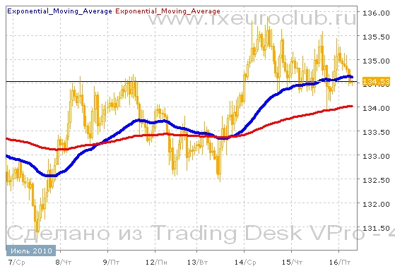 Валютная пара gbp/jpy продолжает колебаться на достигнутых ранее уровнях, хотя появляется все больше признаков продолжения восходящего тренда. После достижения минимума в районе 131,30 состоялся отскок вверх до уровня 135,70. Но дальнейшего движения вверх не последовало. В данный момент цены консолидируются примерно в верхней части диапазона вблизи отметки 134,50. При этом продолжение тренда будет выяснено после выхода котировок за пределы сложившегося диапазона колебаний 131,80-135,70. Комбинация скользящих средних с периодами 55 и 200 сейчас находится в положении восходящего тренда, поскольку быстрая линия пересекла недавно сверху вниз медленную. И обе средние сейчас движутся вверх, поэтому не исключено, что повышение котировок может ускориться. Понижение котировок валютной пары gbp/jpy выглядит менее вероятным пока не пробит вниз уровень поддержки в районе 133,80.