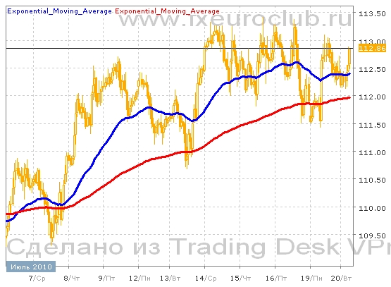 Валютная пара eur/jpy находится в состоянии сильного восходящего импульса. Причем сейчас котировки находятся практически на взлете вблизих сильного уровня сопротивления в районе 113,4. Этот уровень уже много раз тестировался на пробой, но пока всякий раз котировки от него отскакивали вниз. очередная попытка может увеньчаться успехом и тогда целью повышения может стать район 115,00. При этом поведение технических индикаторов в данный момент больше говорит о продолжении восходящего тренда. Поскольку быстрая скользящая средняя с периодом 55 пересекла снизу вверх медленную скользящую среднюю с периодом 200. И обе средние уже развернулись вверх, а котировки смогли закрепиться выше 200 часовой средней. Поэтому в данной ситуации рост более вероятен.