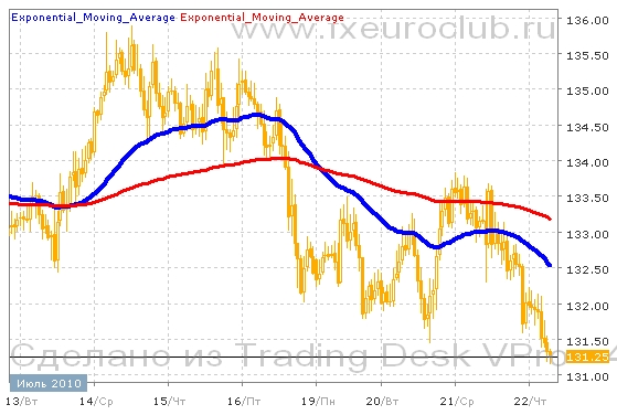 Валютная пара gbp/jpy продолжает колебаться на достигнутых ранее уровнях, хотя появляется все больше признаков продолжения нисходящего тренда. После достижения минимума в районе 131,30 цены закрепились вблизи этого уровня. Но дальнейшего движения вниз пока не последовало. В данный момент цены консолидируются примерно в нижней части диапазона вблизи отметки 131,30. При этом продолжение тренда будет выяснено после выхода котировок за пределы сложившегося диапазона колебаний 131,30-133,50. Комбинация скользящих средних с периодами 55 и 200 сейчас находится в положении нисходящего тренда, поскольку быстрая линия пересекла недавно сверху вниз медленную. И обе средние сейчас движутся вниз, поэтому не исключено, что понижение котировок может ускориться. Повышение котировок валютной пары gbp/jpy выглядит менее вероятным пока не пробит вверх уровень сопротивления в районе 133,50.