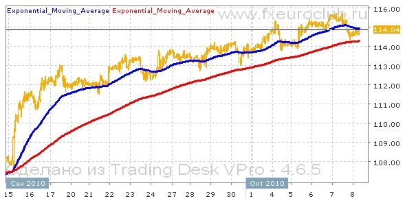 Валютная пара eur/jpy находится в состоянии пологого восходящего тренда. Сейчас котировки продолжают возрастать, обновляя один максимум за другим. Если уровень сопротивления в районе 116,00 будет пробит вверх, то следующей целью повышения может стать уровень 117,00. Технические индикаторы, такие как комбинация скользящих средних с периодами 55 и 200 сейчас находятся в положении восходящего тренда, поскольку быстрая линия пересекла снизу вверх медленную. И обе сейчас движутся с повышением. В данных условиях поведение котировок валютной пары eur/jpy может перерасти в ускорение роста после преодоления уровня 116,00. Понижение котировок в указанных условиях является маловероятным, пока не преодолен вниз уровень 113,00.