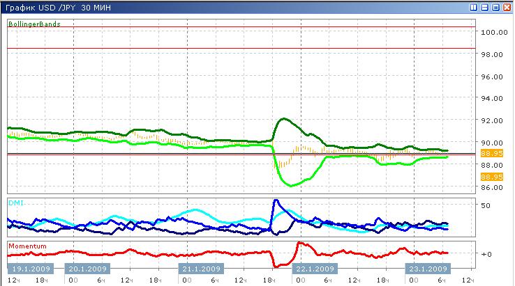 Возможно, к концу дня пара вернётся в состояние близкое к уровню 88.95. Скорость изменения цен практически нулевая (за получасовой период).