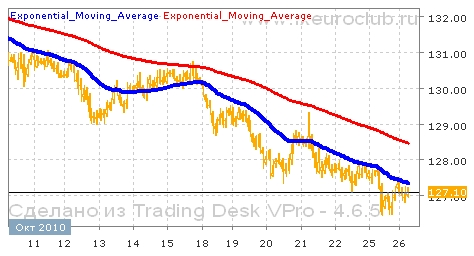 Валютная пара gbp/jpy последние недели двигается в понижательном направлении. После достижения очередного минимума в районе 126,40 цены постепенно отскочили до уровня 127,00. Пока дальнейшего движения ввниз не последовало и котировки сейчас закрепляются на достигнутых ранее уровнях. В данный момент цены консолидируются примерно в нижней части диапазона вблизи отметки 127,00. При этом продолжение тренда будет выяснено после выхода котировок за пределы сложившегося диапазона колебаний 126,40-128,90. Комбинация скользящих средних с периодами 55 и 200 сейчас находится в положении нисходящего тренда, поскольку быстрая линия пересекла сверху вниз медленную. И обе средние сейчас движутся с понижением, поэтому нет уверенности, что понижение котировок может закончиться. Повышение котировок валютной пары gbp/jpy выглядит менее вероятным пока не пробит вверх уровень сопротивления в районе 128,90. В этом случае возможно возвращение в район 133,00.