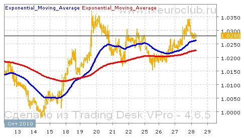 Валютная пара usd/cad последнее время демонстрировала постепенное повышение котировок. Движение вверх происходит постепенно, с небольшими откатами вниз. Локальные максимумы постоянно обновляются. Сейчас в районе 1,0150 образовалась линия поддержки. Отскок от этой линии привел котировки в район 1,0300. Если указанный уровень пробьют вверх, то состоится рост на новые максимумы. Комбинация скользящих средних пока подтверждает сценарий продолжения повышения котировок. Быстрая скользящая средняя с периодом 55 пересекла снизу вверх медленную с периодом 200, и обе сейчас двигаются с повышением. Поэтому движение в ближайшее время продолжится в сторону повышения с целью пробития уровня сопротивления в районе 1,0300.