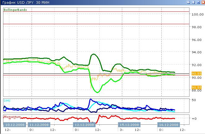 После того, как вчера пара попеременно достигала то максимумов, то минимумов, сегодня продолжается подобная ситуация, однако, с меньшим размахом. На данный момент тенденция роста несколько превышает тенденцию к падению, хотя скорость снижения остаётся выше скорости роста. Тренд крайне слабый и изменчивый. Внутридневной максимум достигнут на уровне 90.7500. Судя по всему, движение сегодня продолжится между линией сопротивления 90.80 и поддержки 90.30.